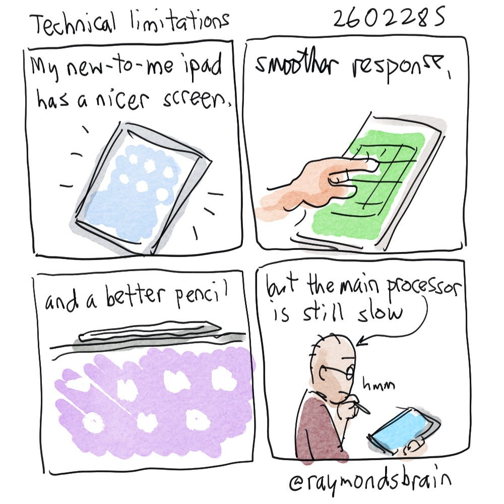I got a hand me down ipad pro from my daughter who upgraded. She tries to use it like a laptop until she finds out she can’t. So the most important thing I use it for is drawing comics. I don’t think my comics have gotten any better, but I still like to draw them and thinking about them as a way to tell myself that I am a cartoonist. I like the process of making a comic and don’t want something else doing my thinking for me. But if a robot could pick up dog poop for me, I’d be okay with that.