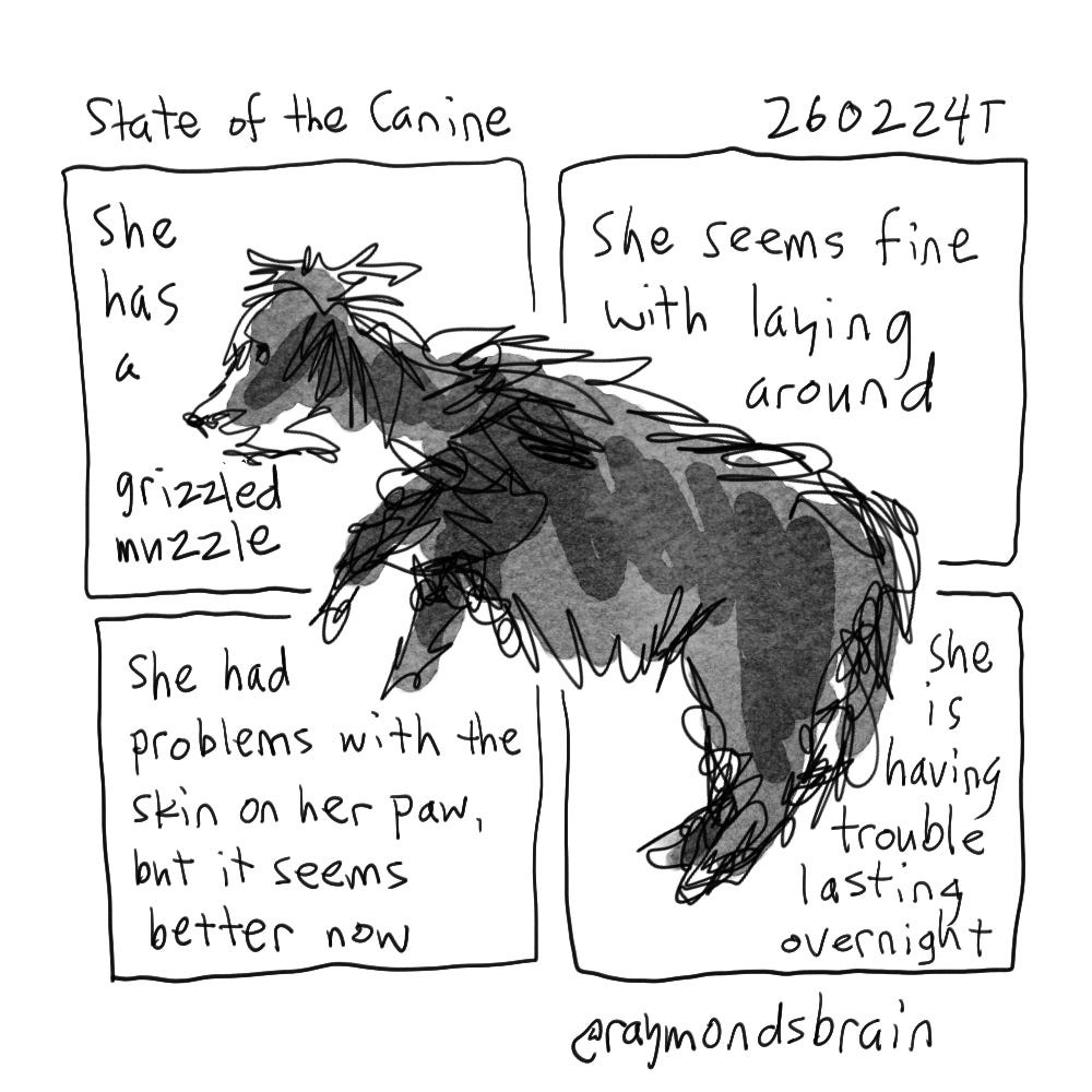 Letting sleeping dogs lie. Maybe this is the lion I was talking about before. The old girl has always been good about taking naps. And I didn’t have any ideas for a comic, so I drew her as she was. She has been the subject of some veterinary interventions lately. which might have been triggered by other medications she had been on. We are going in to test for Cushing’s disease, which I had not heard of before, but hopefully it does not mean she ends up looking like Peter Cushing.