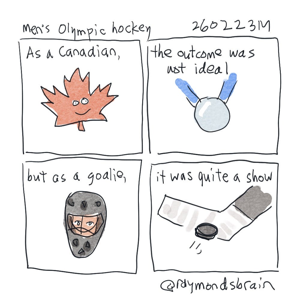 Maybe I jinxed them by calling last week’s newsletter the Gold Medal edition, although I did not actually say they would win and I am not superstitious. Anyhow, it seems the US men’s team has been poisoned by their association with Trump. I don’t really follow hockey much any more so I did not even know who the goalie for the US was or that he plays for the Winnipeg Jets. Connor Hellebuyck. I only watched the highlights and he made some impressive saves. What is it about all these hockey players named Connor? It does seem kind of ridiculous to get a Presidential Medal of Freedom.
