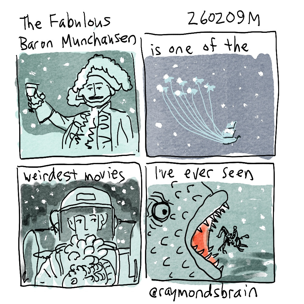 I watched this 1962 film by Karel Zeman in subtitles on the Kanopy service. I’m not sure what language they were speaking. It looked quite unusual as a combination of live action and animation. Once upon a time, I had seen a film by Terry Gilliam called The Adventures of Baron Munchausen which had similar elements, though I found that one annoying because it felt like it had anti-scientific tendencies. This one is mostly absurdly whimsical.