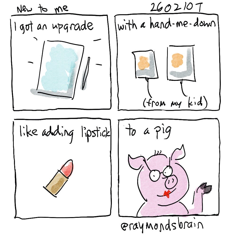 My daughter “had” to get a new device, so she let me have her old one. This one is bigger and faster than my old one and the screen protector has a paper-like texture to it, which feels nice to draw on. Also it is able to run the latest ios, so I am learning to use that. I don’t know if this will make my comics any better or easier to make.