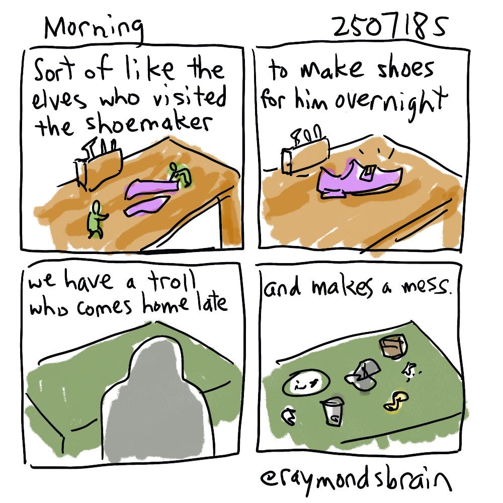 Housework always reminds me of the myth of Sissyphus, which I have probably mentioned before. Perhaps it is just entropy. If I talk about this too much it will probably lead to civil war. I have some vacuuming anyhow.