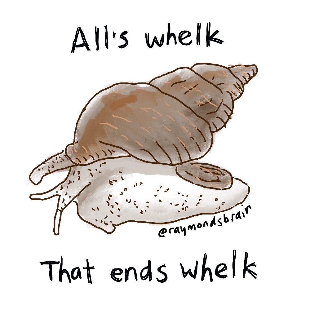 This is my ongoing invertebrate joke series. Given that invertebrates comprise about 97% of the animal kingdom, this might go on for a while. If you’re not into marine biology, a whelk is a usually predatory snail. So you if you’re a barnacle or mussel, you might not be happy to see one.